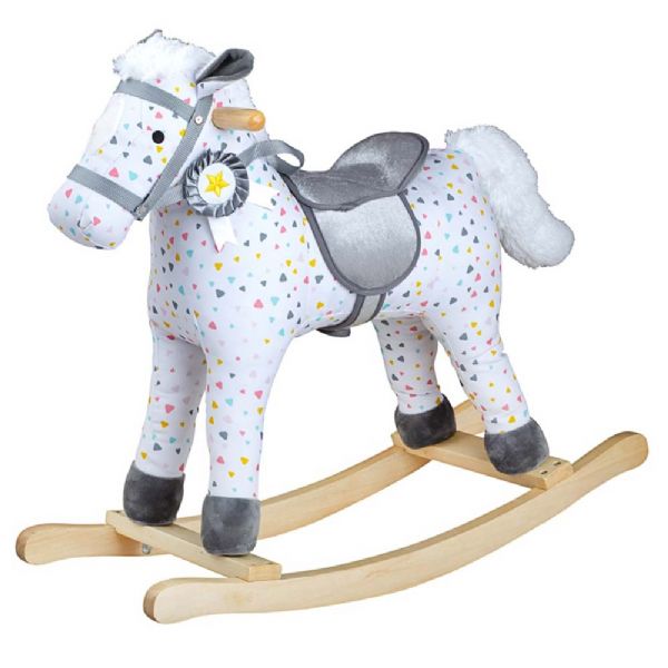 Denne smukke omhyggeligt udformede gyngehest med mønster har et dejligt design med en blød sadel og matchende hovedtøj. Roseten kan endda tages af og gives på igen, når væddeløbet er vundet! Det robuste håndtag, gør det nemt at sadle op og tage en tur. De (Læs mere)
