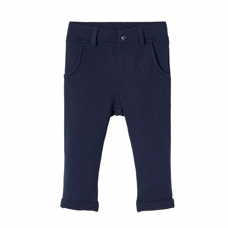 Fede mørkeblå sweatbukser i bomuld fra Name It med justerbar talje, snydelommer i siderne og lille opsmøg ved benene. Bukserne har en blød, børstet inderside så de er super behagelige for ungerne at have på! 95% økologisk bomuld, 5% elastan. Vaskes ved 40 (Læs mere)